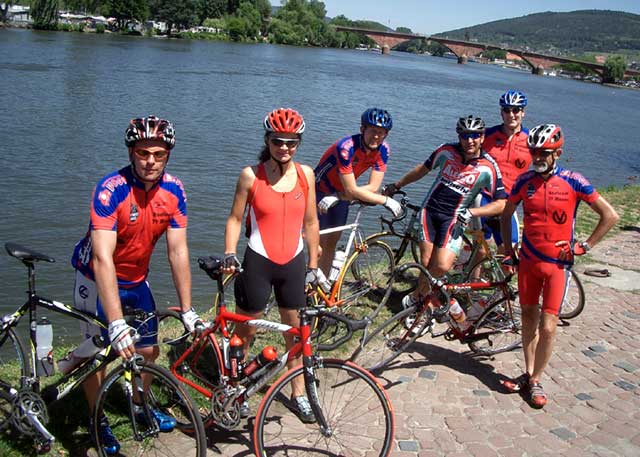 Radteam TV Mauer aktuell:Hallo liebe Radsportfreunde, Als letztes noch ein aktueller Ausblick auf die erste Septemberwoche: voraussichtlich fährt der gesamte Tross der Deutschland-Tour samt Werbekarawane am Montag, dem 01. Sept., durch Mauer! Im Bereich des Rathauses soll eine Sprintwertung stattfinden und das Radteam wird für Unterhaltung und Verpflegung sorgen. Als Steigerung findet dann, wie schon berichtet, am darauffolgenden Sonntag, dem 07. Sept., unser traditionelles Bergrennen im Finsterbachtal statt. Allen Radsportinteressierten empfehlen wir diese beiden Termine im Kalender vorzumerken. Sportliche Grüße Ausflug der Hobbyradgruppe 2008 in die PfalzAm Samstag den, 28. Juli um 8 Uhr ging es mit 16 Radlern vom Schulhof in Mauer los. Über Schatthausen, Wiesloch, Frauenweiler, St.Leon-Rot und danach quer durch den Wald ging es nach Hambrücken an den Vogelpark. Dort gab es Kaffee, und zwei weitere Radler stiessen zu uns. Weiter fuhren wir nach Graben-Neudorf, Liedolsheim zur Insel Rott. Im dortigen Fischerheim machten wir Mittagspause und liessen es uns bei Seelachs, Zander, Schrimps und anderem gut gehen. Dort hatten wir unseren letzten Zuwachs für diesen Tag. Mit 19 Personen waren wir jetzt komplett. Am Rhein entlang machten wir uns zur Fähre nach Leopoldshafen auf. Nach einem Kurztrip auf der „Aida“ landeten wir auch schon in Leimersheim, und unsere Räder hatten ersten Bodenkontakt mit der Pfalz. Dann ging es weiter Richtung Kandel nach Freckenfeld. Dort wollten wir bei der 1025-Jahr-Feier bei den Landfrauen Kaffee trinken. Zwar mussten wir feststellen, dass die Feier bereits im vergangenen Jahr stattgefunden hatte, aber der Gesangverein veranstaltete ein Brunnenfest, und dort wurden wir hervorragend versorgt. Weiter ging es zu unserem Etappenziel, dem „Deutschen Weintor“ in Schweigen-Rechtenbach. Nach 100 km und 400 Höhenmetern konnten wir unser Nachtquartier beziehen. Den Abend verbrachten wir beim Johannisfeuer auf dem Sonnenberg. Am nächsten Morgen starteten wir um 9 Uhr, um über die „Deutsche Weinstraße“ nach Gleisweiler zur Walddusche zu fahren. Die Strecke durch die Weinberge verlangte und trainierte unsere Bergfähigkeiten bei ständigem Auf und Ab. Da kam die Walddusche gerade recht. Bei sommerlichen Temperaturen wagten sich doch einige unter das nur 8°C kalte Wasser. So wieder belebt, ging es nach Rhodt unter der Rietburg zum Mittagessen in der Alten Schmiede. Danach fuhren wir weiter nach St. Martin ins Park-Cafe. Dort gab es Kaffee, EM-Eisbecher und EM-Kuchen. Das Cafe lag natürlich ganz oben am Berg, alles andere hätte uns sehr enttäuscht. Dann ging es über Maikammer nach Kirrweiler zu unserem Nachtquartier. Nach 60 km und ca. 900 Hm bereiteten wir uns auf das EM-Finale vor. Am nächsten Morgen ging es um 10 Uhr Richtung Heimat über Speyer, mit Dombesichtigung und Mittagessen am Rhein. Über Altlußheim, Neulußheim, Reilingen, Walldorf, Wiesloch, Dielheim, Unterhof kamen wir nach weiteren 70 km und 250Hm wieder in Mauer an. In der „Krone Post“ beschlossen wir unseren wunderbaren Ausflug bei schönstem Sommerwetter und möchten uns alle recht herzlich bei Maritta Vettermann bedanken, die diesen Ausflug ausgearbeitet und hervorragend organisiert hat. Bis zum nächsten Jahr, ihre Berichterstatterin Christine Banschbach.